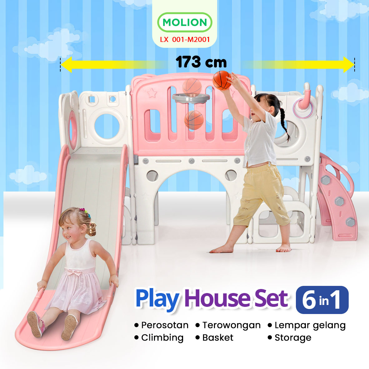 MOLION Playhouse Playground Slide Prosotan Mainan Play House Indoor Outdoor Taman Bermain Anak 001-M2001